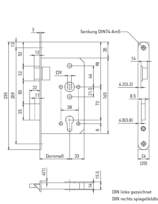 PZW: Zylinderschloß vorgerichtet für Profilzylinder, mit Wechsel, 2-tourig
