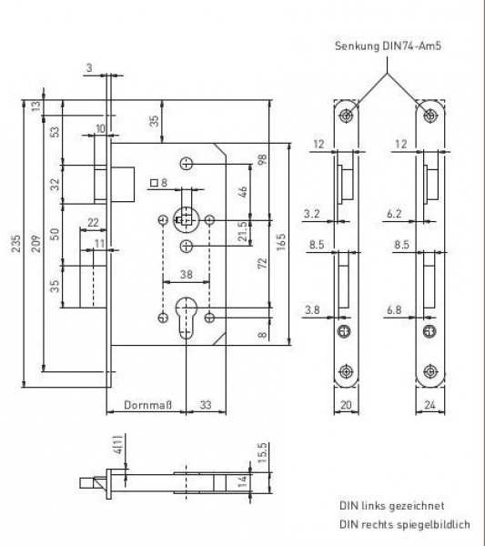 Schlosskasten: geschlossen, verzinkt mit Zuhaltungssicherung