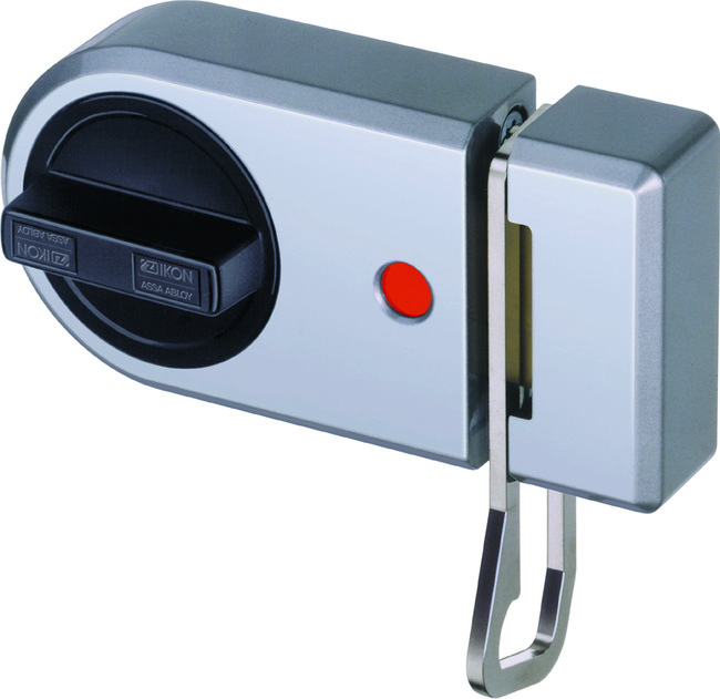 - Massiver Sperrbügel aus Stahl, vernickelt - für spaltbreites Öffnen der Tür