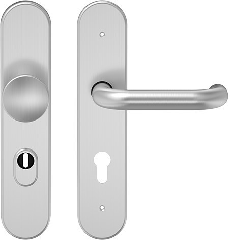Feuerschutz Sicherheits-Langschild Wechselgarnitur F1-elox. Knauf/Drücker mit KZS