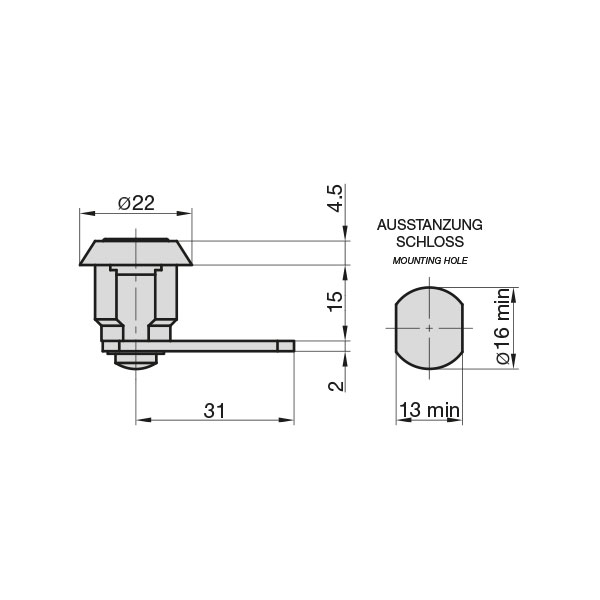 Preview: Hebelzylinder mit 2 Schlüsseln