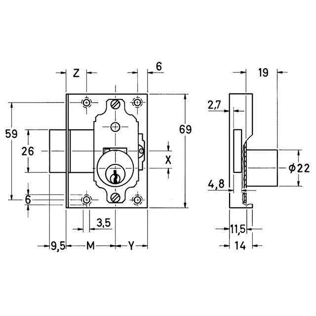 Mobile Preview: JuNie Zylinder-Riegelschloss 2808