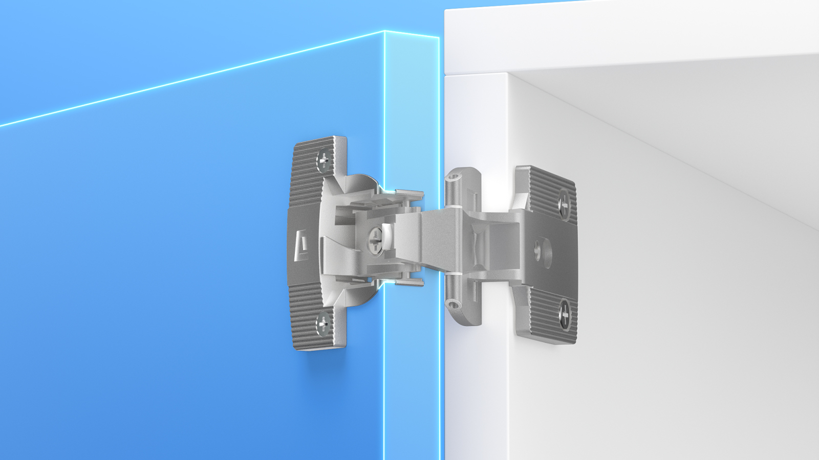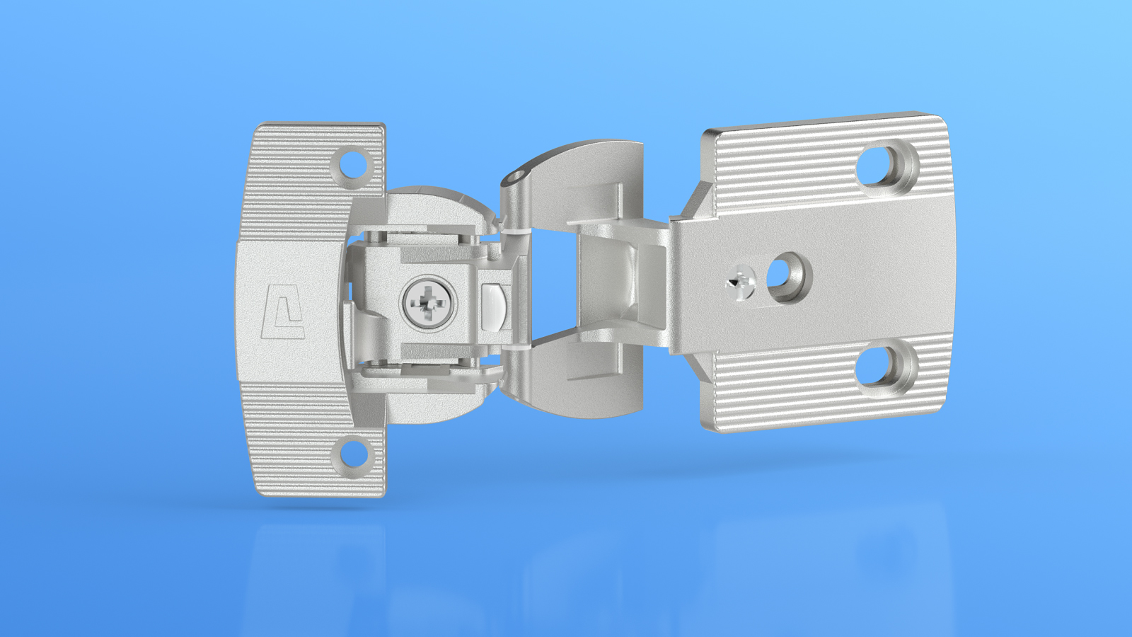 Ein ganzes Scharnier besteht aus Rahmen- und Türteil.