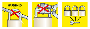 Welche Vorteile bietet ein Rundbügelschloss wie das Circle 21 von BURG-WÄCHTER? Ganz einfach: Aufgrund der besonderen Scheiben-Form und der Bügelkonstruktion gibt es kaum Angriffspunkte für die üblichen Aufbruchswerkzeuge. Denn der Bügel ist zum großen Teil im Schlosskörper versteckt. Des Weiteren ist der Bügel vom Circle 21 gehärtet und verchromt. Übrigens zeigt das der geprägte Schriftzug „Hardened“ auf dem Bügel.