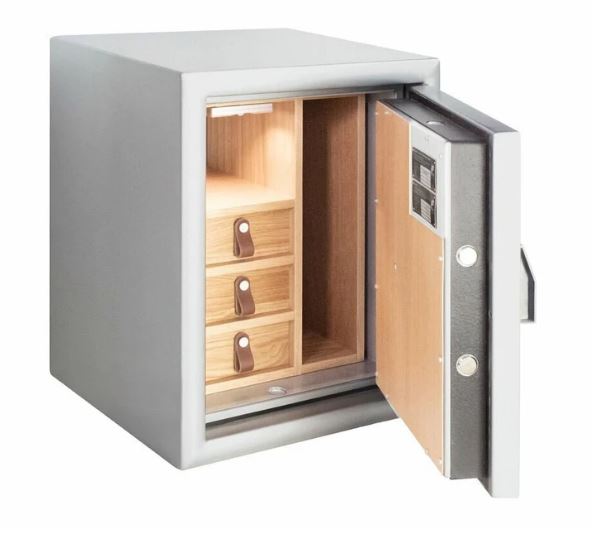 Holz-Innenausstattung. Natürlich korrespondiert auch der Farbton des Tresors mit der Holz-Ausstattung.